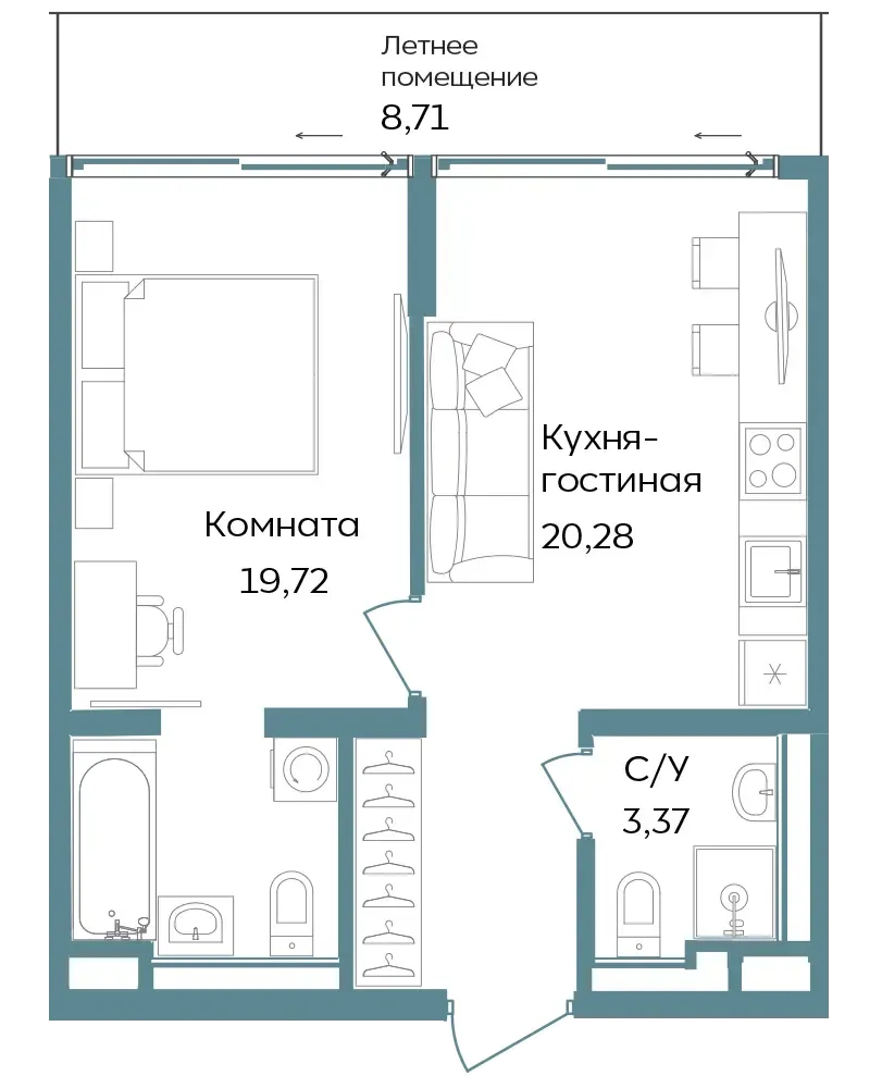 Студии и апартаменты с 1–3 комнатами в формате европланировок.