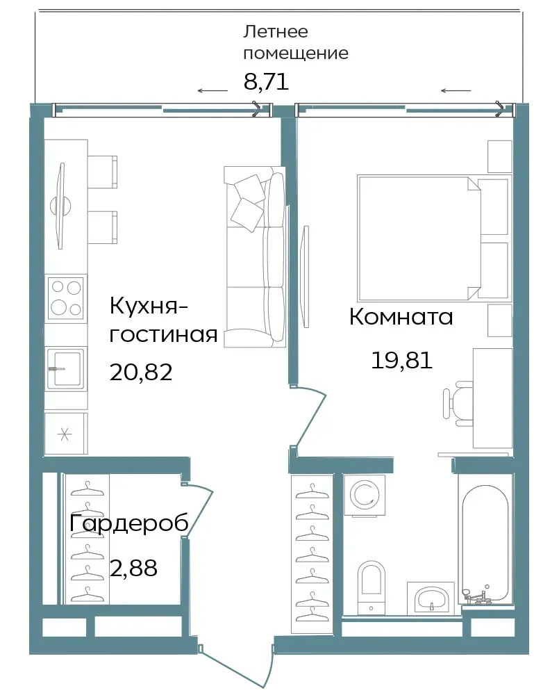 Студии и апартаменты с 1–3 комнатами в формате европланировок.