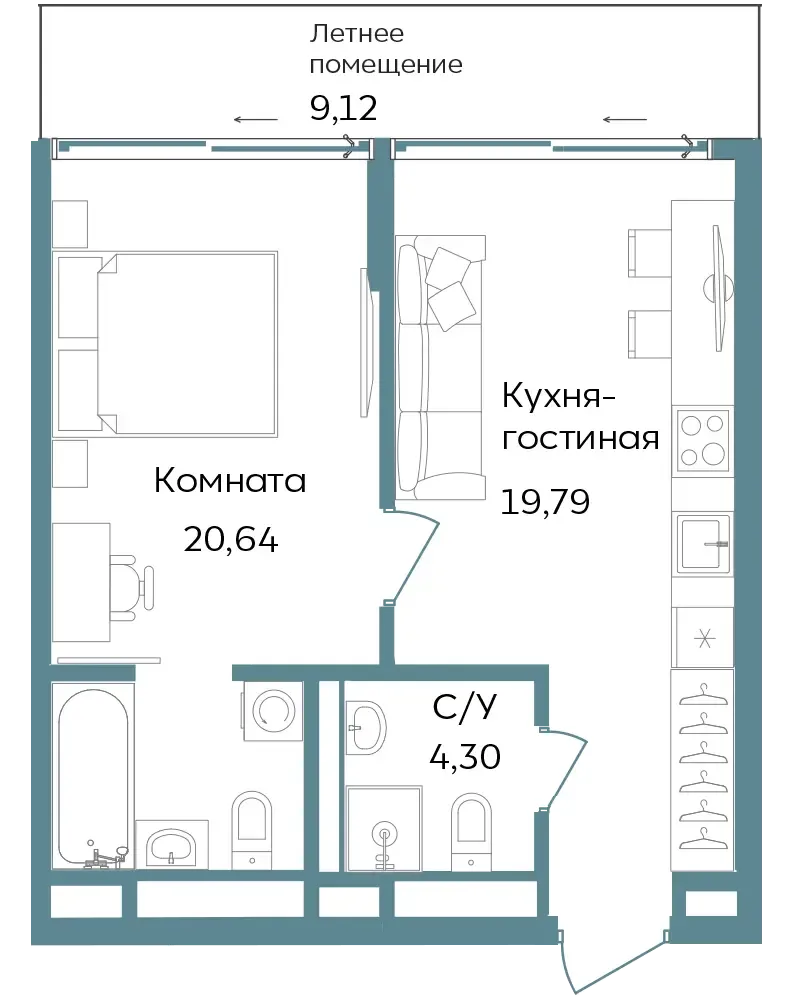 Студии и апартаменты с 1–3 комнатами в формате европланировок.