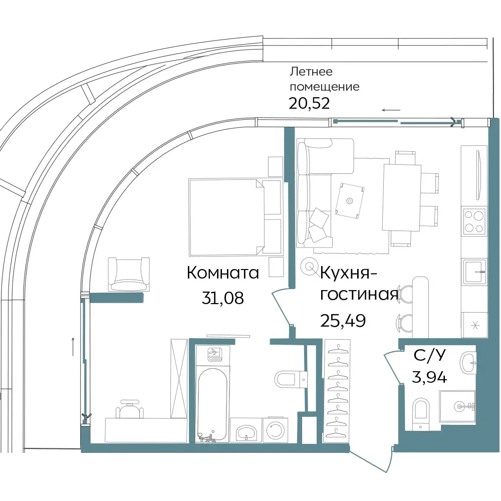 Студии и апартаменты с 1–3 комнатами в формате европланировок.