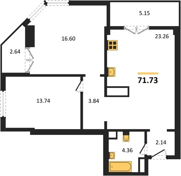 - 70 двухкомнатных квартир (57–72 м²)