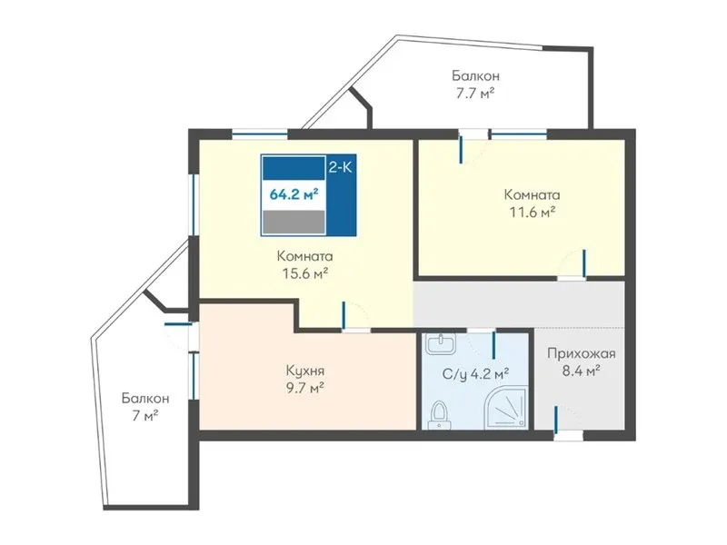 Каждая планировка разработана так, чтобы жильё было просторным, светлым и уютным.