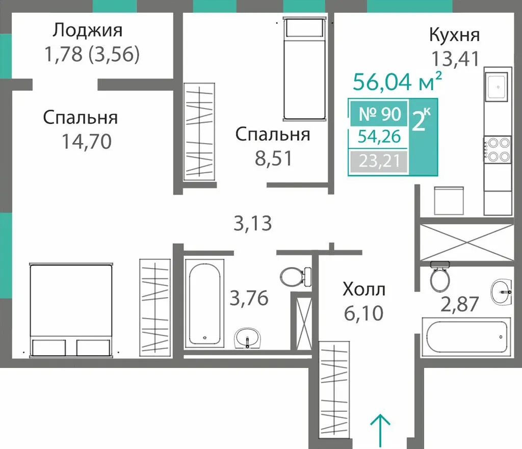 - 2-комнатные — 48–69 м², функциональность и комфорт.