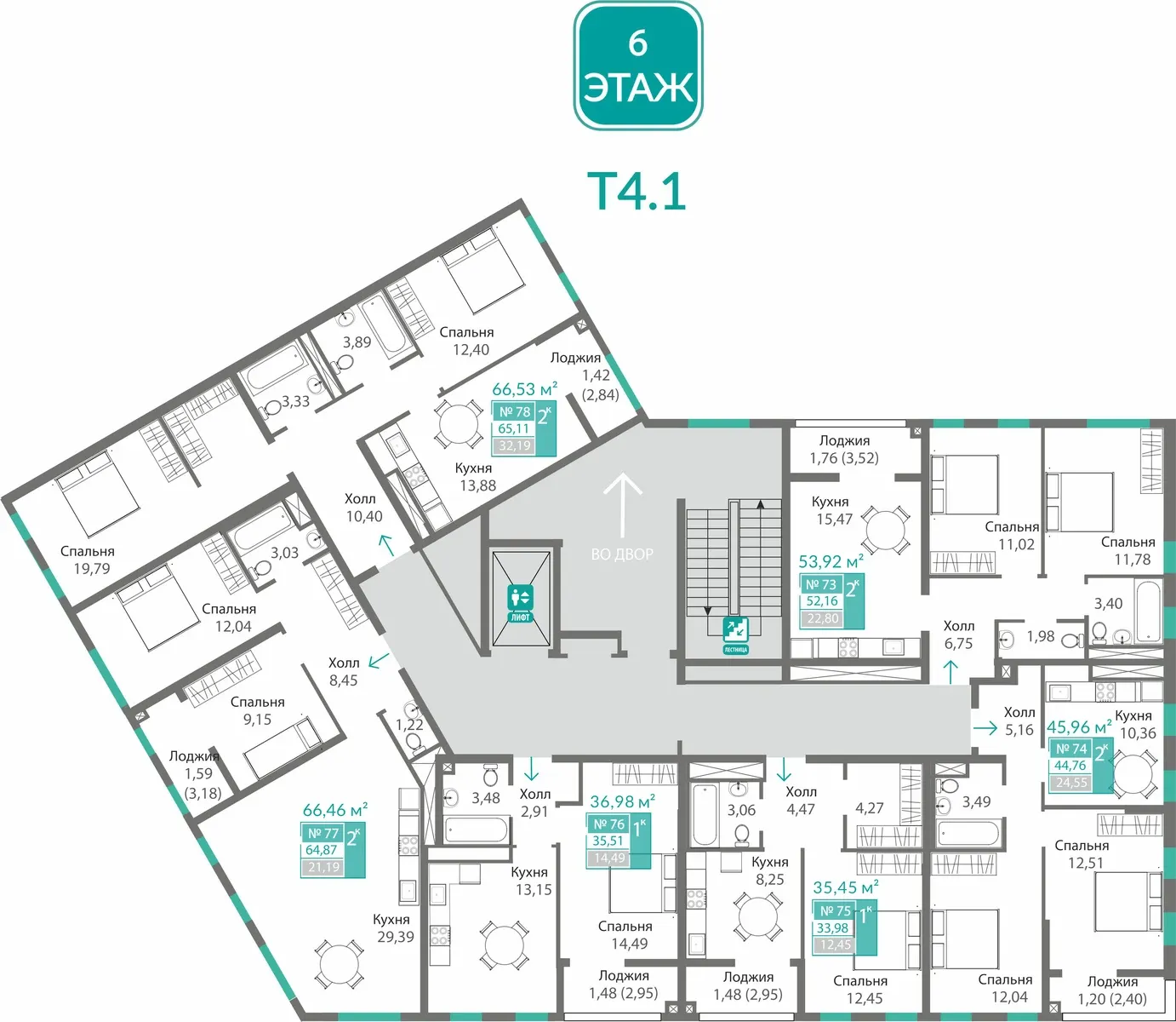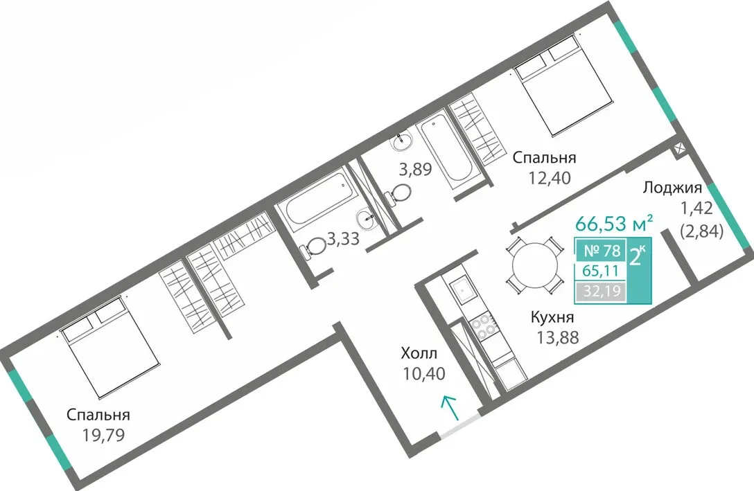 - 3-комнатные — до 78,5 м², пространство для семьи.