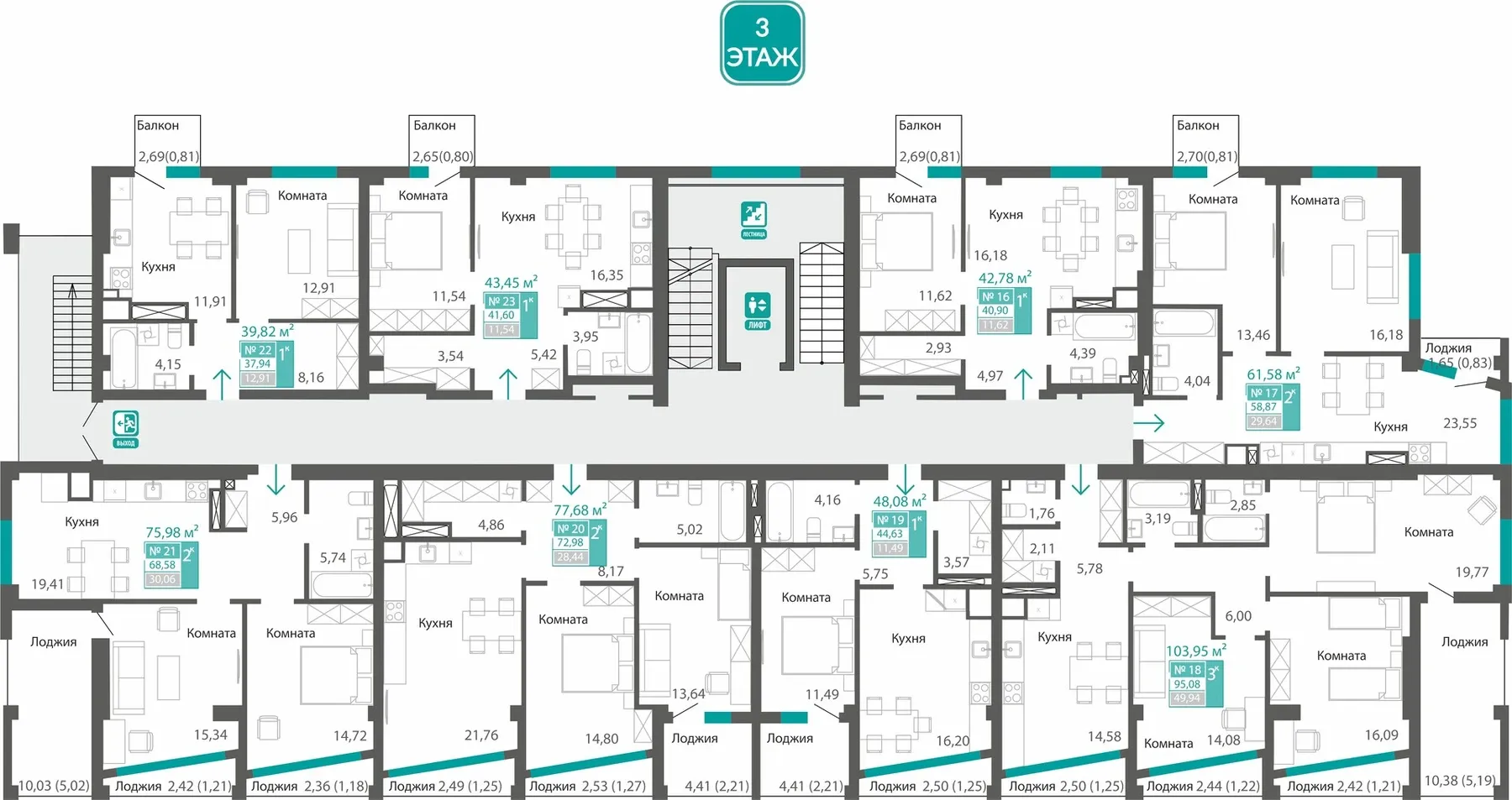 3 лоджии |