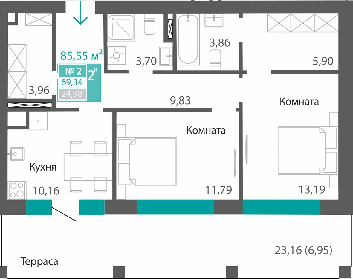 - Высота потолков — 3,05 м. Воздух, свет, ощущение свободы.
