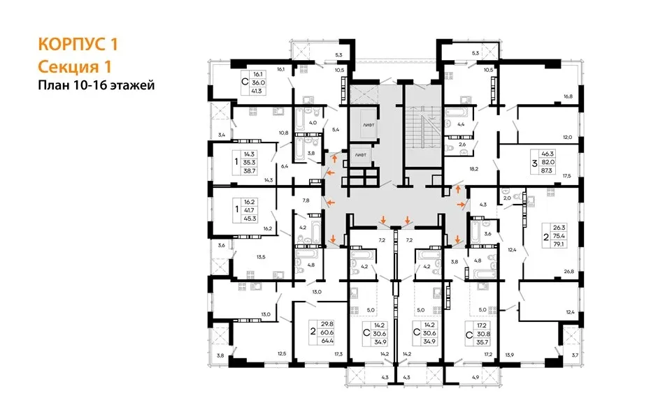 - Двухкомнатные от 64,6 м² — гармония для пар