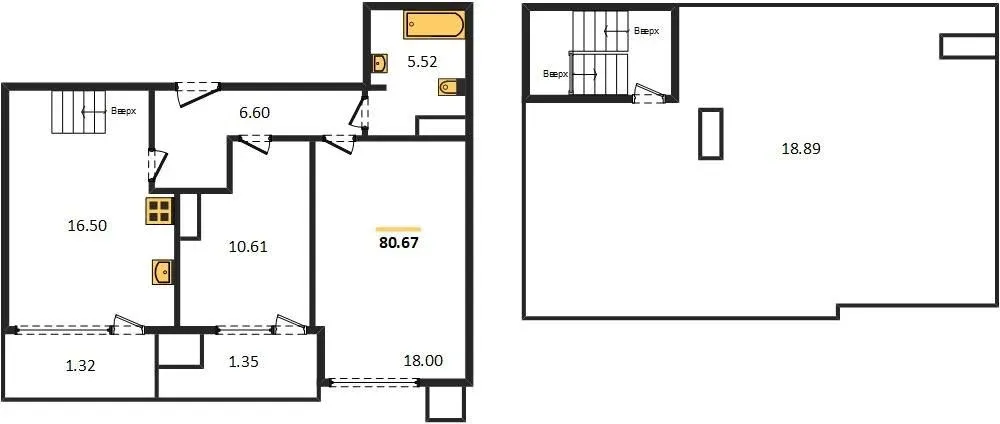 - Двухуровневые апартаменты с видовыми террасами до 128 м²