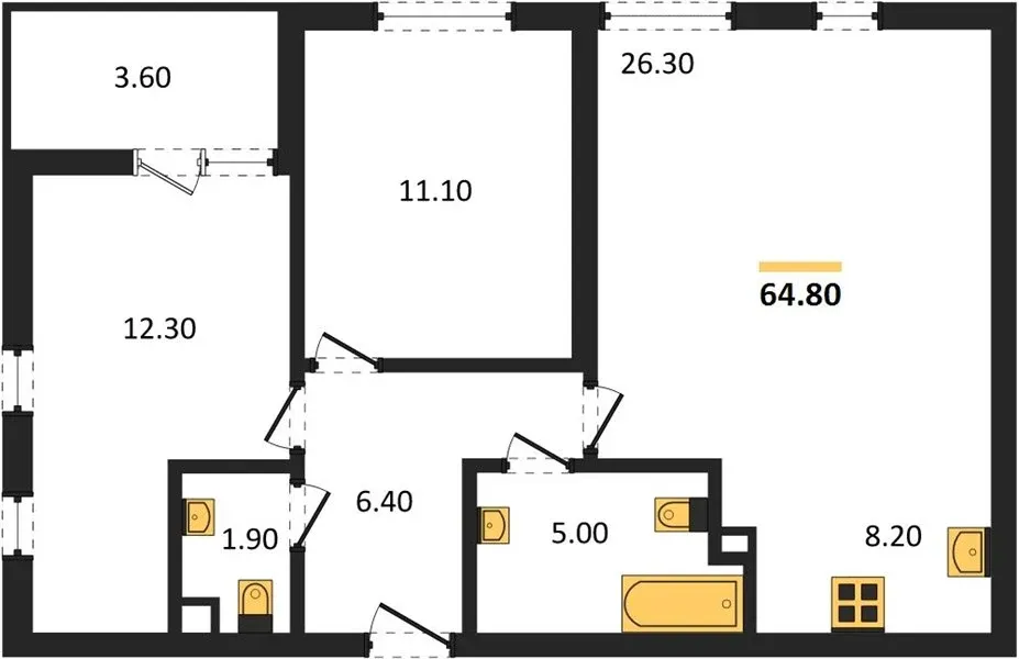 Квартира: 2 к 64,80 кв.м., 2 этаж в комплексе Молодежное, 1 очередь, корп.2, сдача: 2кв. , этажей: 12, адрес Молодежное пгт., , Застройщик: ГК Аркада Крым.