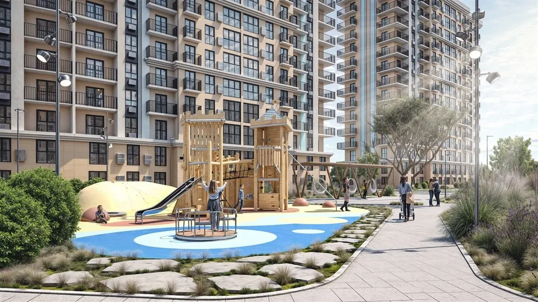 - Простор для вас и ваших детей: Прогулочные зоны, современные детские площадки, где звучит счастливый смех, и спортивный комплекс с тренажерами под открытым небом — здесь каждый найдет занятие по душе.