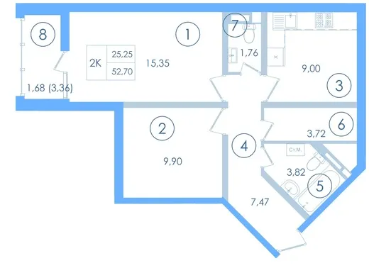 - Квартиры от функциональных студий (от 25 м²) до просторных трёхкомнатных (до 102 м²). Здесь можно купить квартиру как для одного, так и для большой семьи.