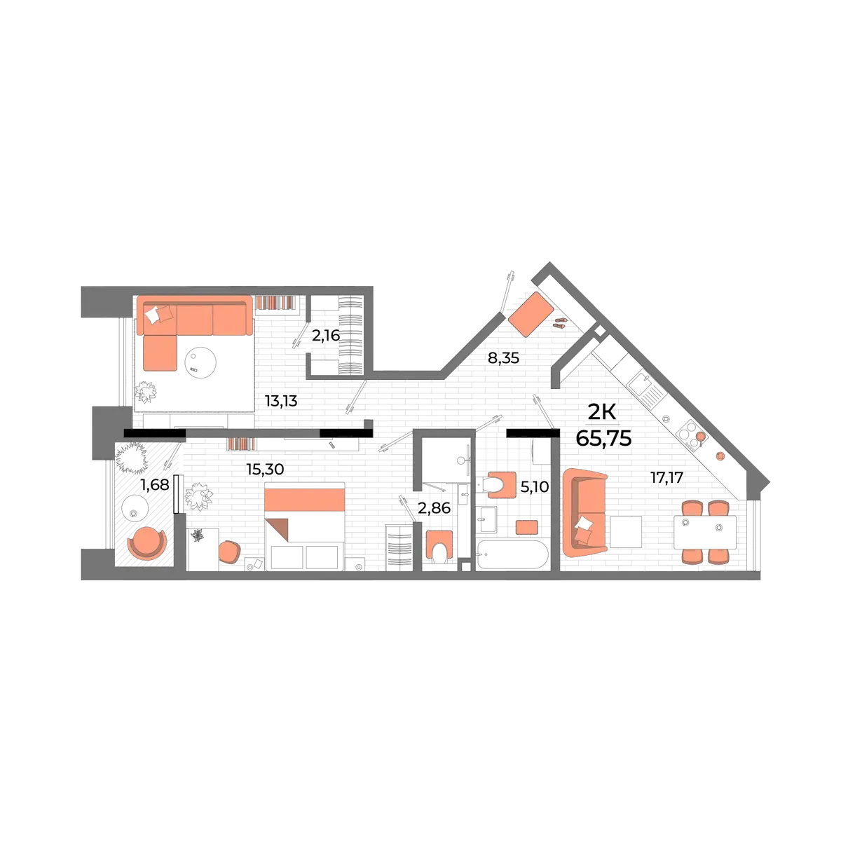 - Квартиры от функциональных студий (от 25 м²) до просторных трёхкомнатных (до 102 м²). Здесь можно купить квартиру как для одного, так и для большой семьи.