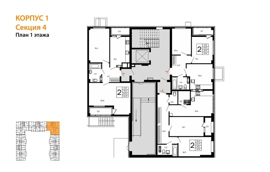 - Функциональные 2-комнатные (48–69 м²) — комфорт для семьи.