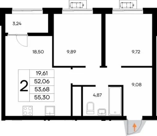Квартира: 2 к 55,30 кв.м., 3 этаж в комплексе Новый Судак, 1 очередь, корп.1, сдача: 4кв. , этажей: 9, адрес Судак г., Судак р-н, д. ул. Яблонева, Застройщик: Интерстрой.