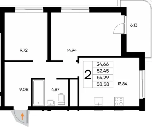 Квартира: 2 к 58,58 кв.м., 4 этаж в комплексе Новый Судак, 1 очередь, корп.1, сдача: 4кв. , этажей: 9, адрес Судак г., Судак р-н, д. ул. Яблонева, Застройщик: Интерстрой.