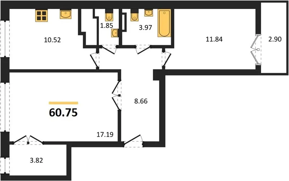 - Функциональные двухкомнатные 57-74 м² — идеальный вариант для малой семьи