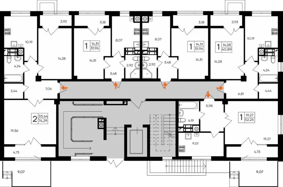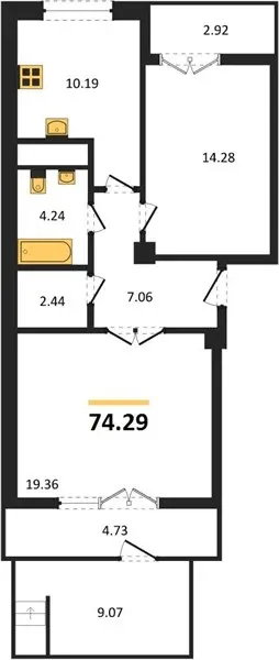 - Функциональные двухкомнатные 57-74 м² — идеальный вариант для малой семьи