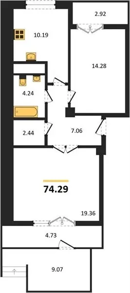 - Функциональные двухкомнатные 57-74 м² — идеальный вариант для малой семьи