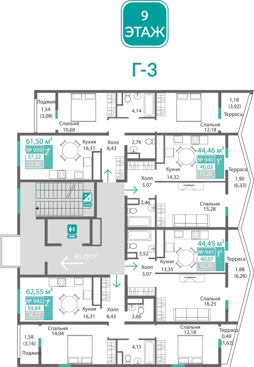 • Квартиры с собственными двориками на первых этажах — ваше личное патио, ориентированное во внутренний двор. Уникальное предложение для тех, кто мечтает о своем уголке зелени, не уезжая из города.