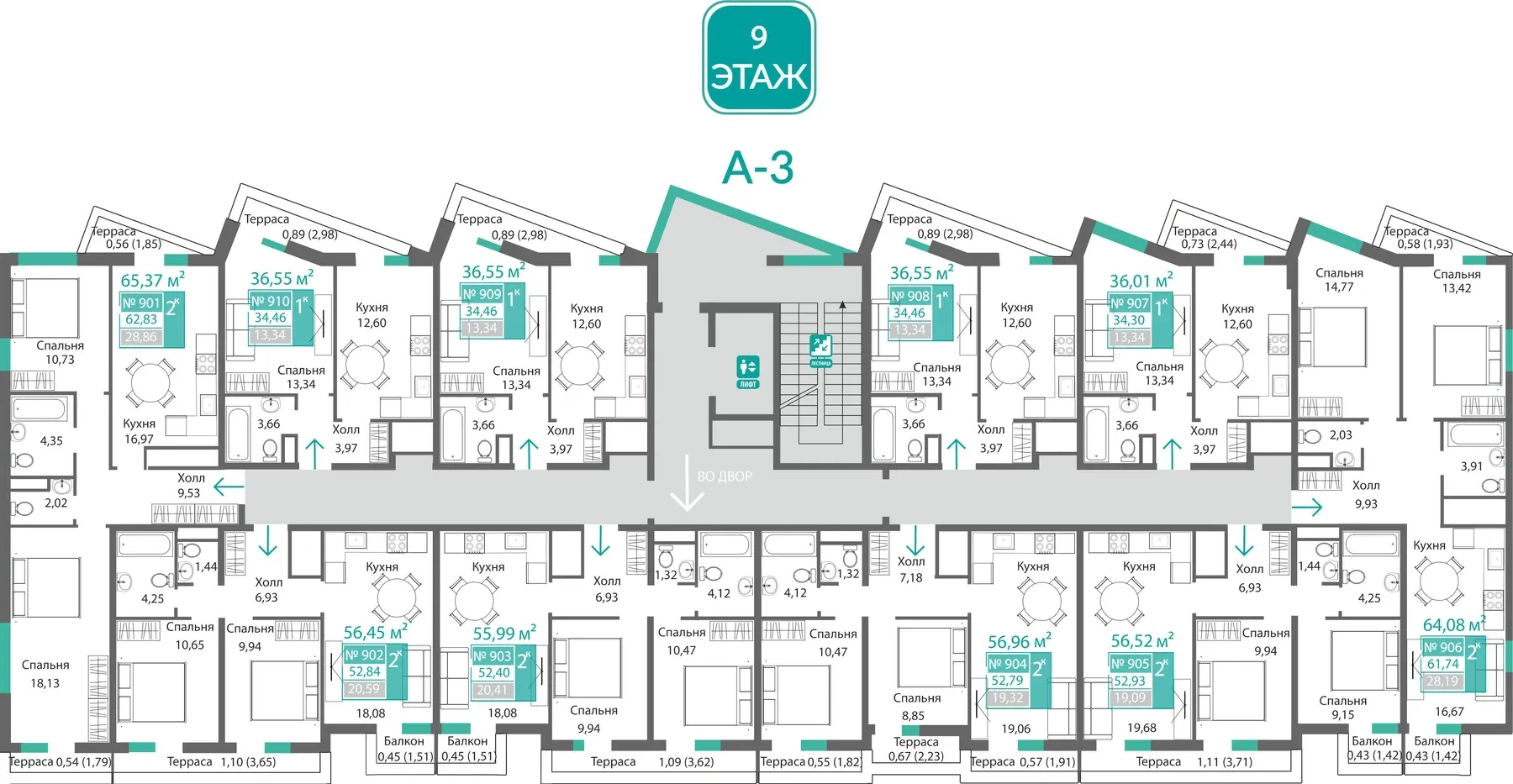 - Квартиры с собственными двориками на первых этажах — ваше личное патио, ориентированное во внутренний двор. Уникальное предложение для тех, кто мечтает о своем уголке зелени, не уезжая из города.