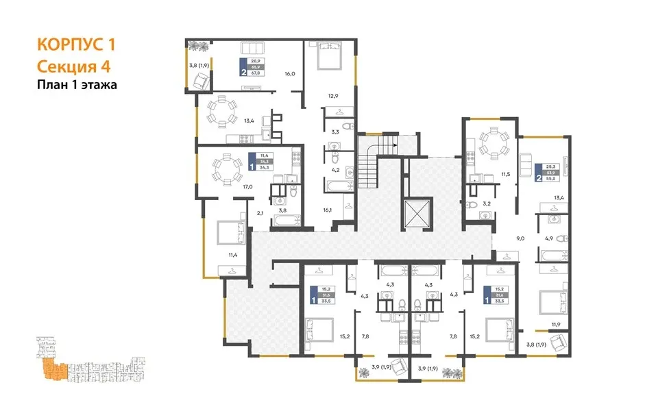 - 4 дома переменной этажности (4-5 этажей) — камерность и приватность