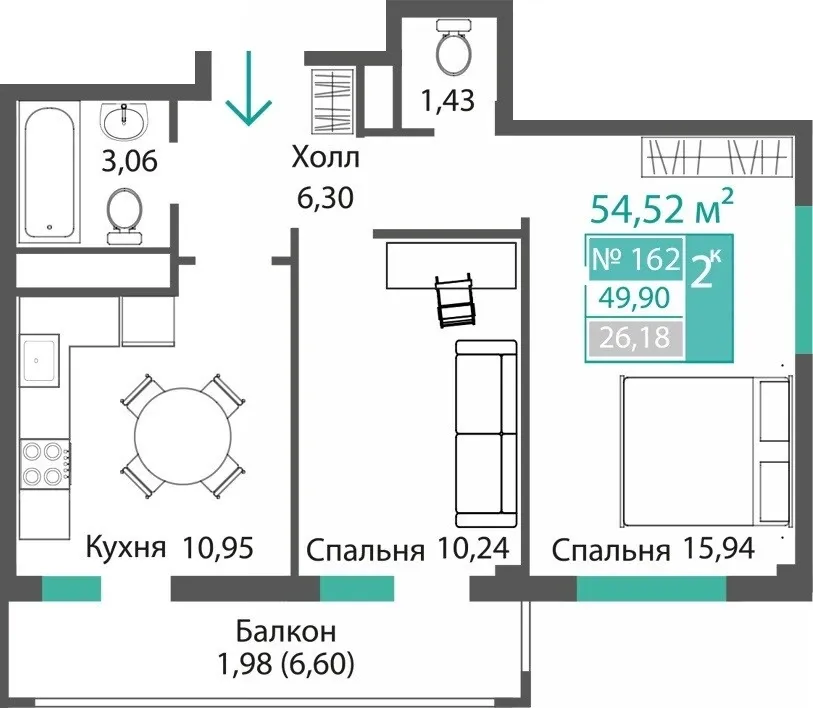В продаже — 1 и 2-комнатные квартиры с продуманными, функциональными планировками. Ни одного лишнего метра — только пространство, которое работает на вас.