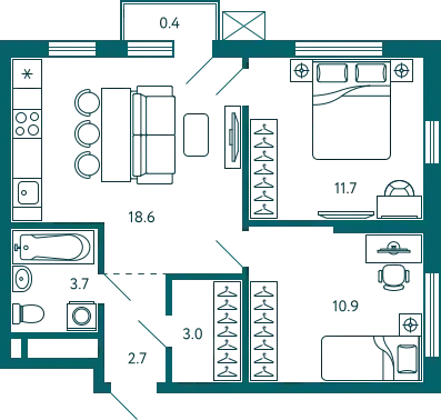Продается квартира в ЖК «Садовые кварталы» с 2 спальнями на 7 этаже 15 этажного дома. Общая площадь: 51.1 кв.м. Высота потолков 2.85 м. Срок сдачи 1 квартал 2028 г. Эскроу-счет. Застройщик ГК «Садовое кольцо».