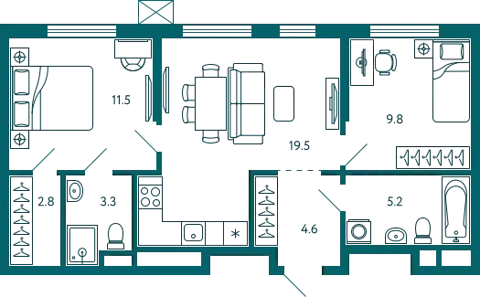 Продается квартира в ЖК «Садовые кварталы» с 2 спальнями на 2 этаже 15 этажного дома. Общая площадь: 56.7 кв.м. Высота потолков 2.85 м. Срок сдачи 1 квартал 2028 г. Эскроу-счет. Застройщик ГК «Садовое кольцо».
