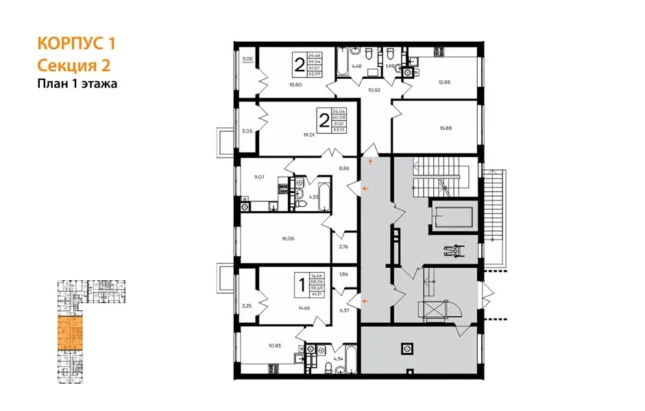 - Функциональные двухкомнатные 57-62 м² — комфорт для пары или малой семьи
