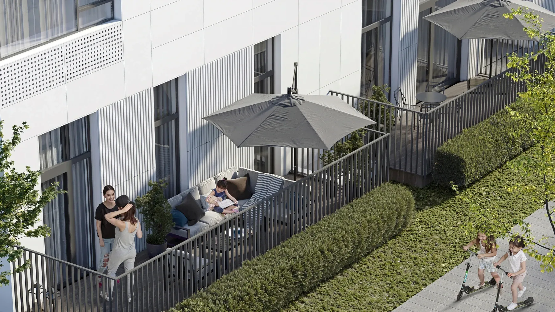 - Квартиры с патио и отдельным входом на 1 этаже, личный дворик, приватность.