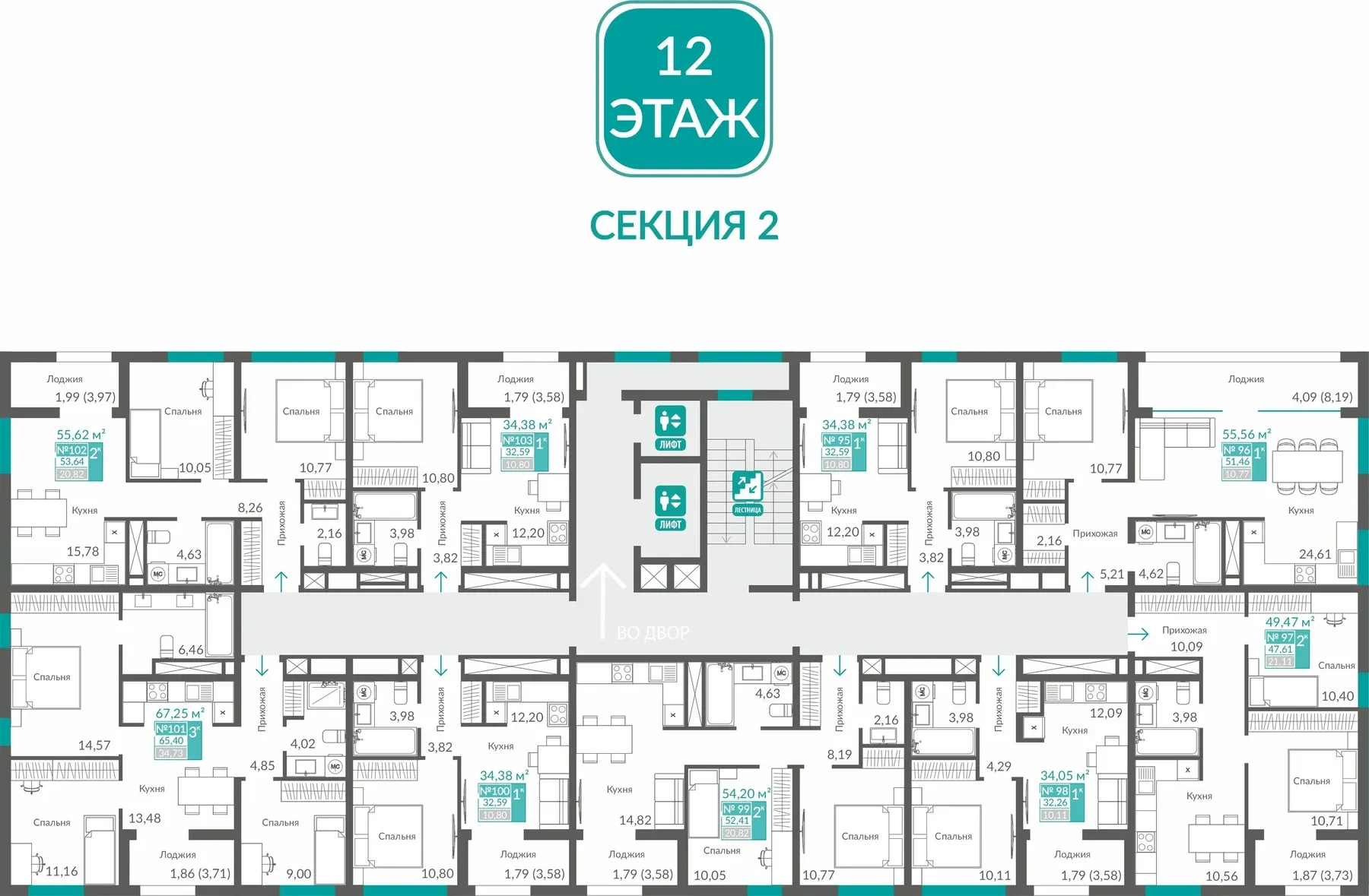 - Колясочные и санузлы в каждой секции.