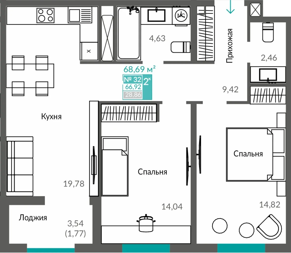 - Квартиры с евроформатом. Кухни-гостиные — центр притяжения семьи и друзей.