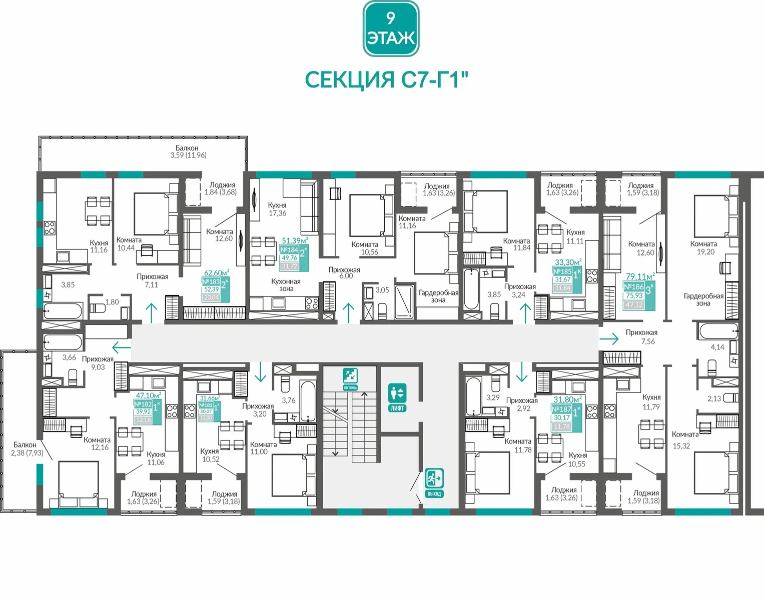 Квартира 3-комн. 75.93 кв.м 9/9 эт.