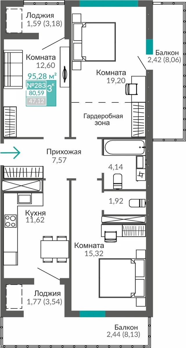 2 балкона |