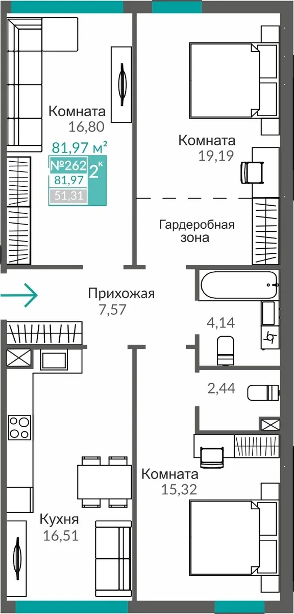 Застройщик создал квартиры, в которых хочется проводить время, принимать гостей и радоваться каждому дню. Ни одного лишнего метра — только эргономика и функциональность.