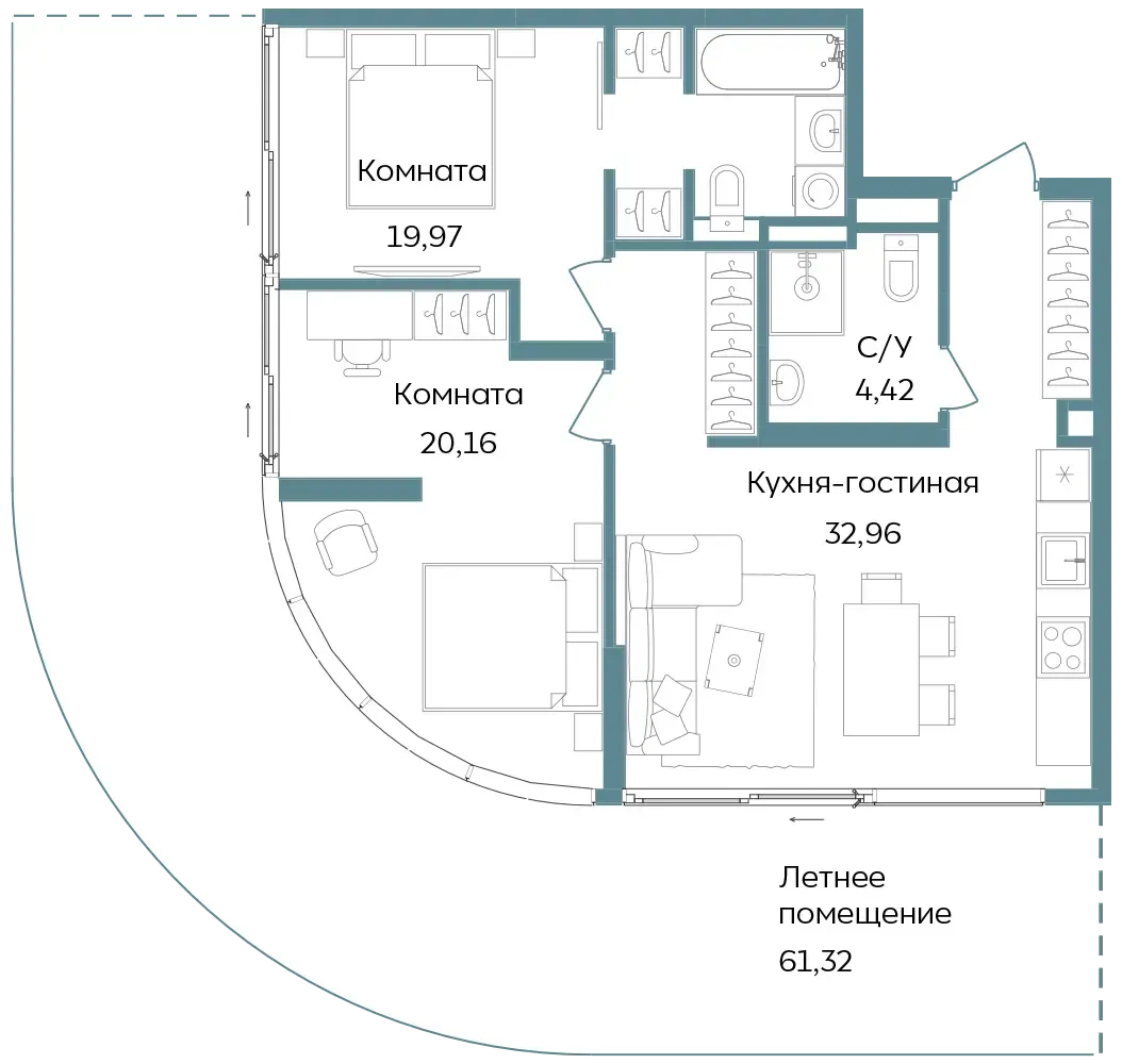 Студии и апартаменты с 1–3 комнатами в формате европланировок.