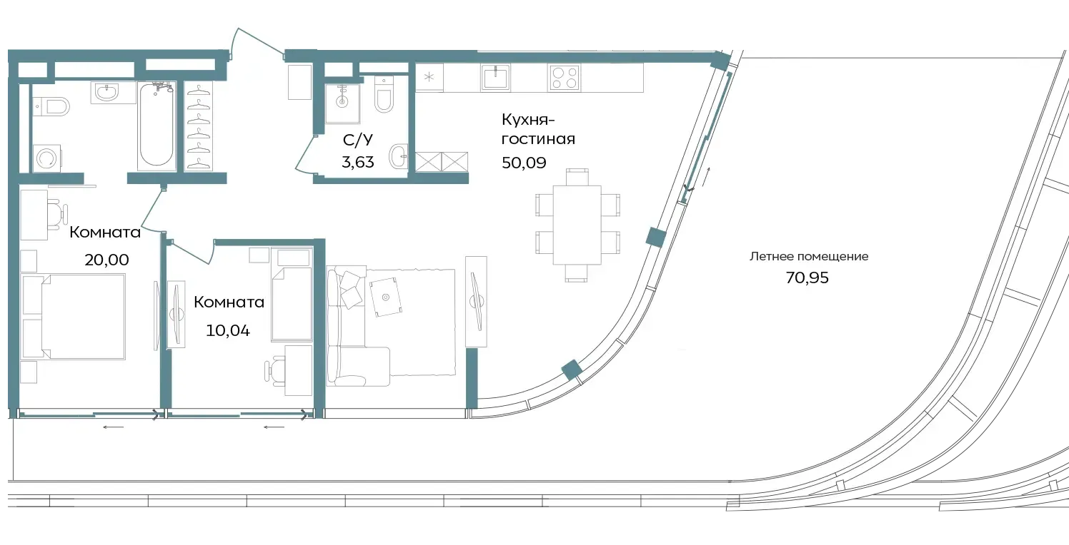 Студии и апартаменты с 1–3 комнатами в формате европланировок.