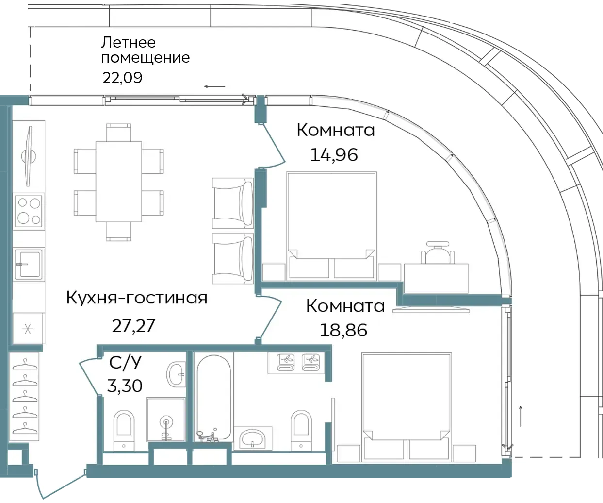 Студии и апартаменты с 1–3 комнатами в формате европланировок.