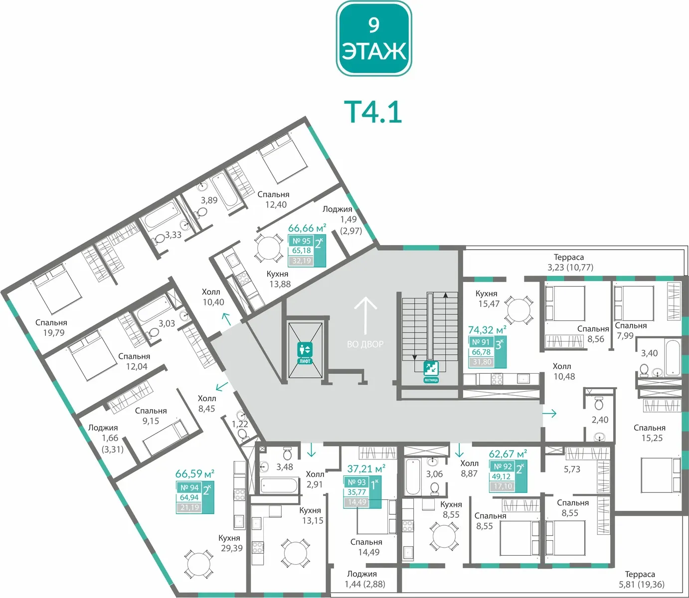 - 2-комнатные — 48–69 м², функциональность и комфорт.