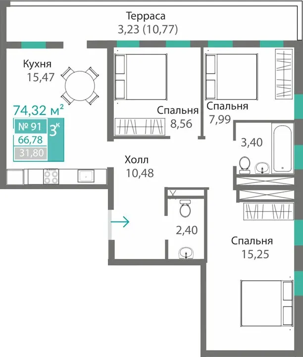 - 3-комнатные — до 78,5 м², пространство для семьи.