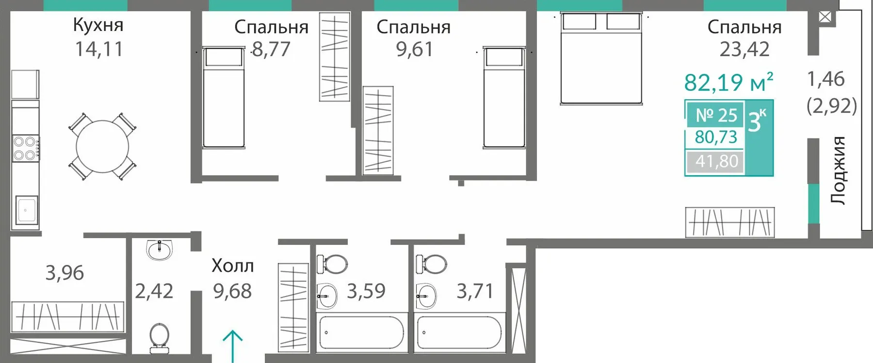 - 3-комнатные — до 78,5 м², пространство для семьи.