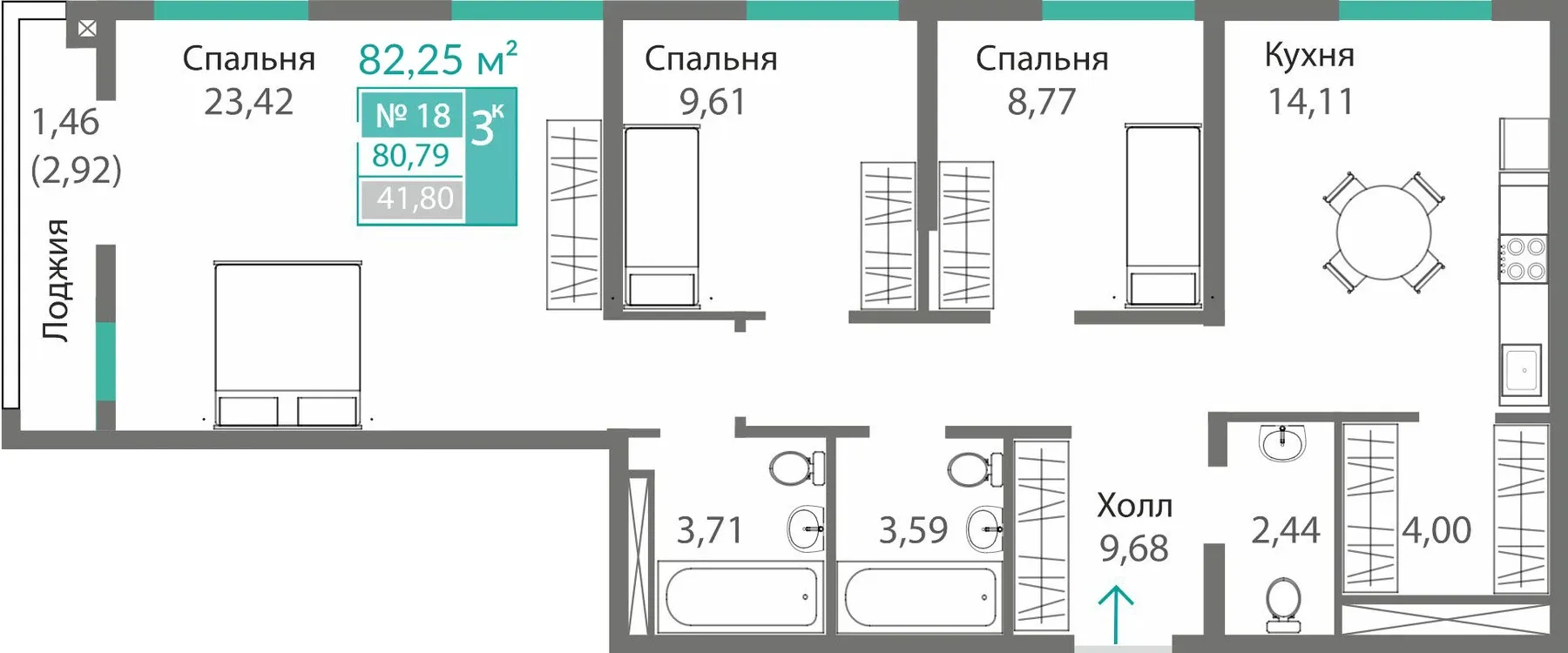 - 3-комнатные — до 78,5 м², пространство для семьи.