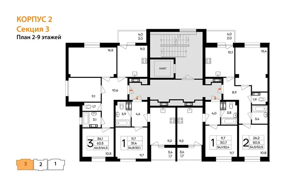 - Автономное отопление и ГВС — двухконтурные газовые котлы в каждой квартире