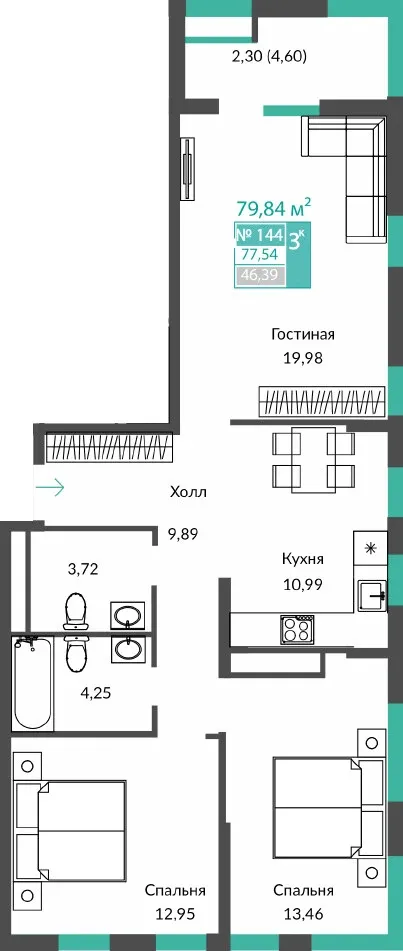 Жилая площадь, м²