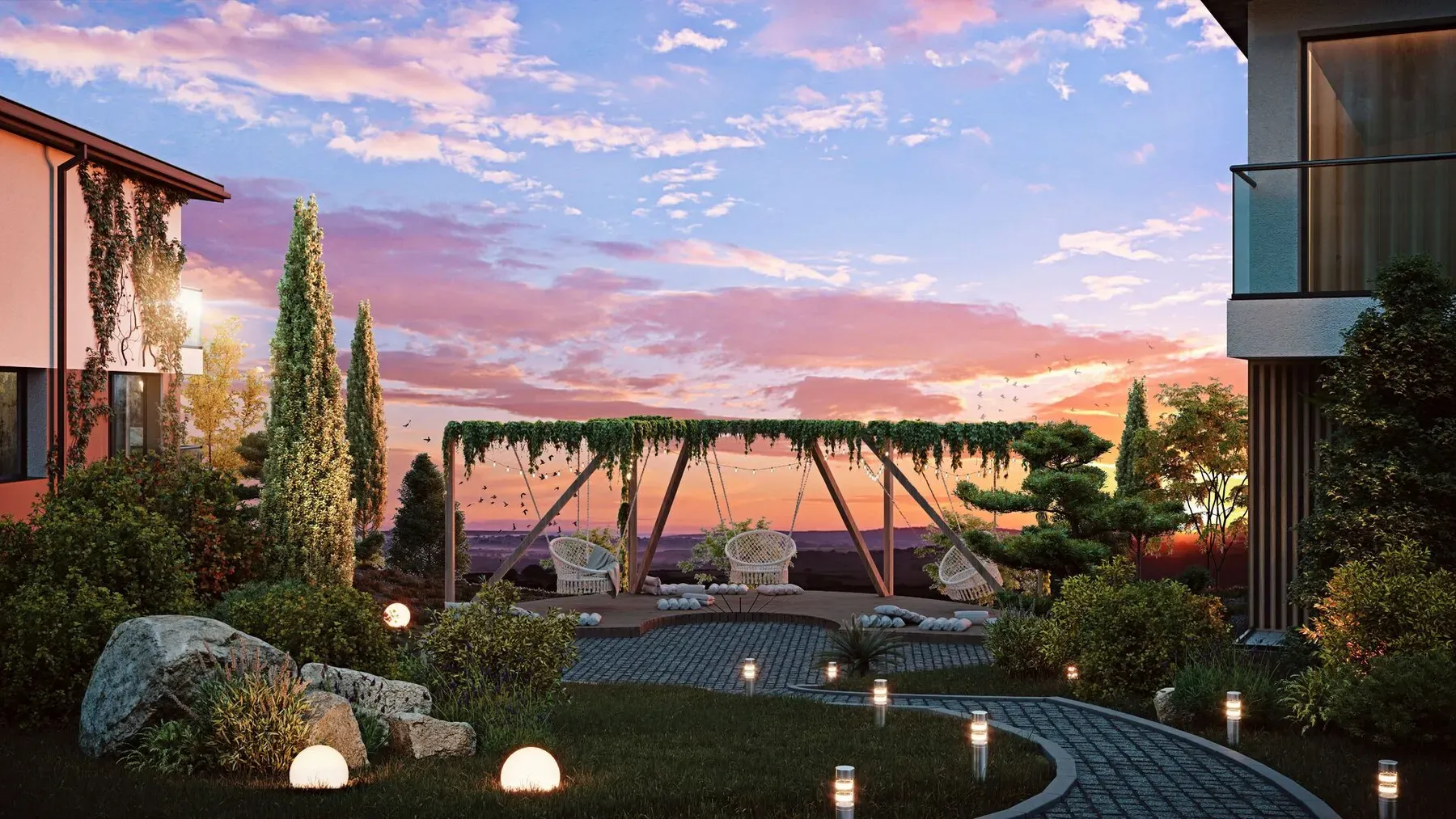 Благодаря продуманному расположению корпусов из каждого таунхауса открывается вид на море, горы или лес.