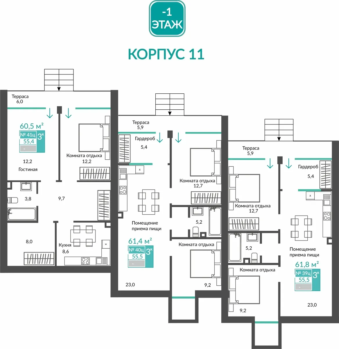 - Просторные террасы и балконы — приватные зоны для утреннего кофе и вечерних посиделок.