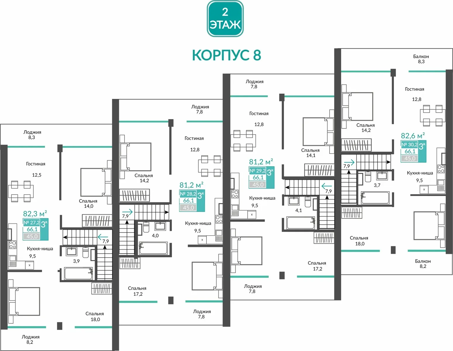 - Просторные террасы и балконы — приватные зоны для утреннего кофе и вечерних посиделок.