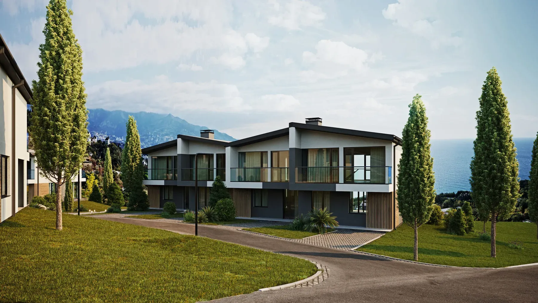 Благодаря продуманному расположению корпусов из каждого таунхауса открывается вид на море, горы или лес.