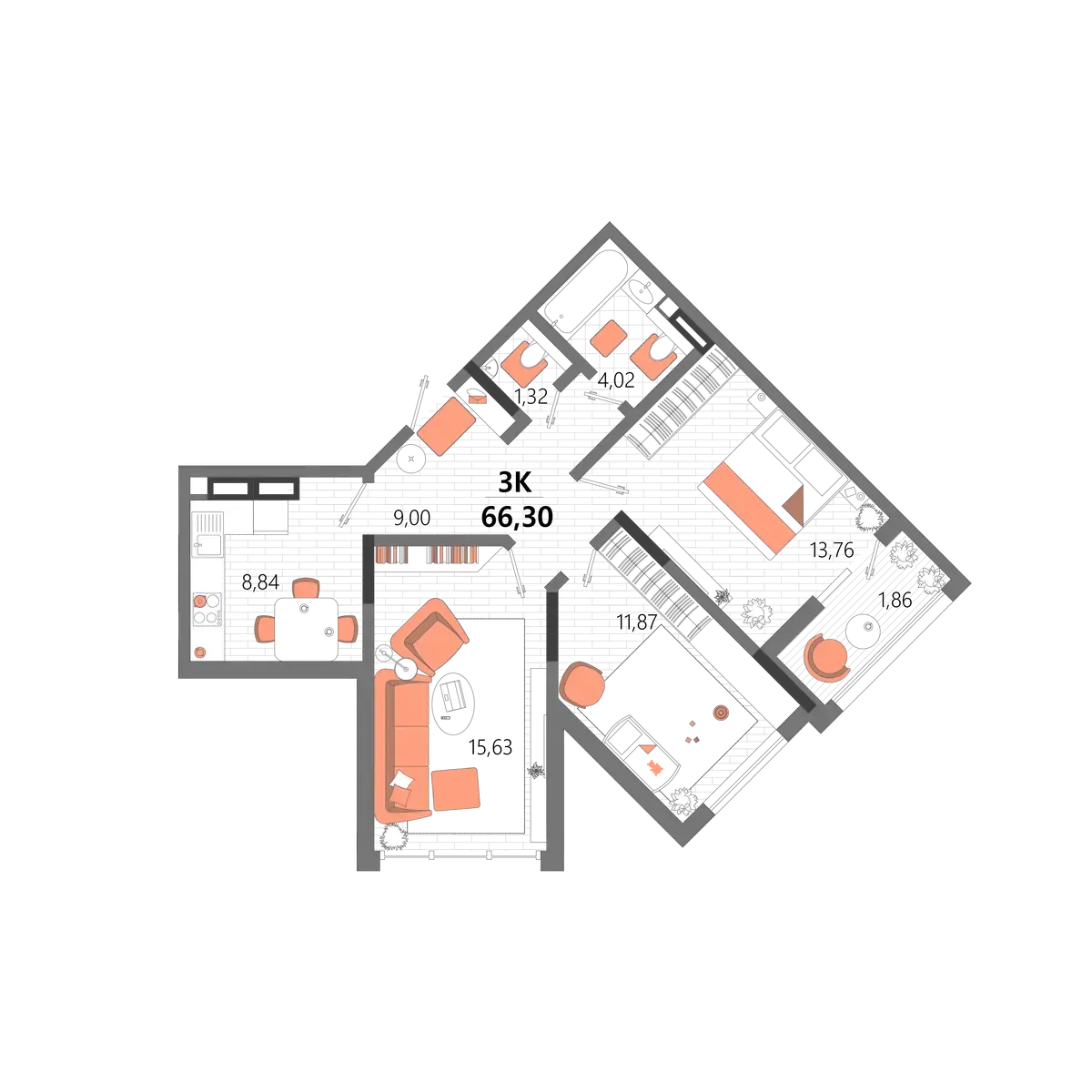- Квартиры от функциональных студий (от 25 м²) до просторных трёхкомнатных (до 102 м²). Здесь можно купить квартиру как для одного, так и для большой семьи.