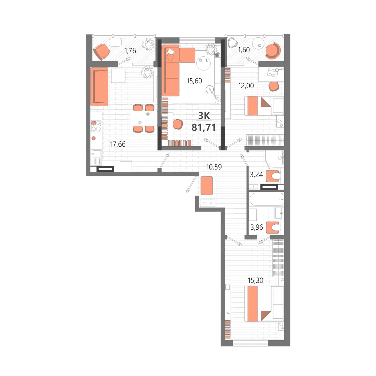 - Квартиры от функциональных студий (от 25 м²) до просторных трёхкомнатных (до 102 м²). Здесь можно купить квартиру как для одного, так и для большой семьи.